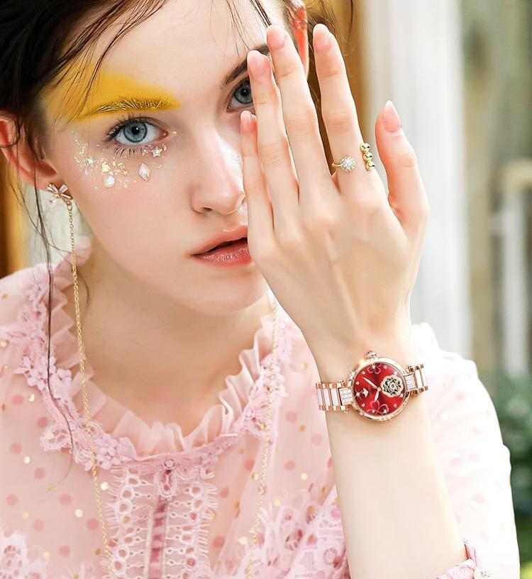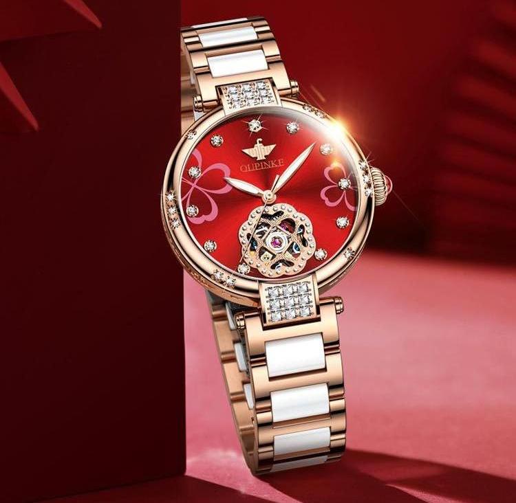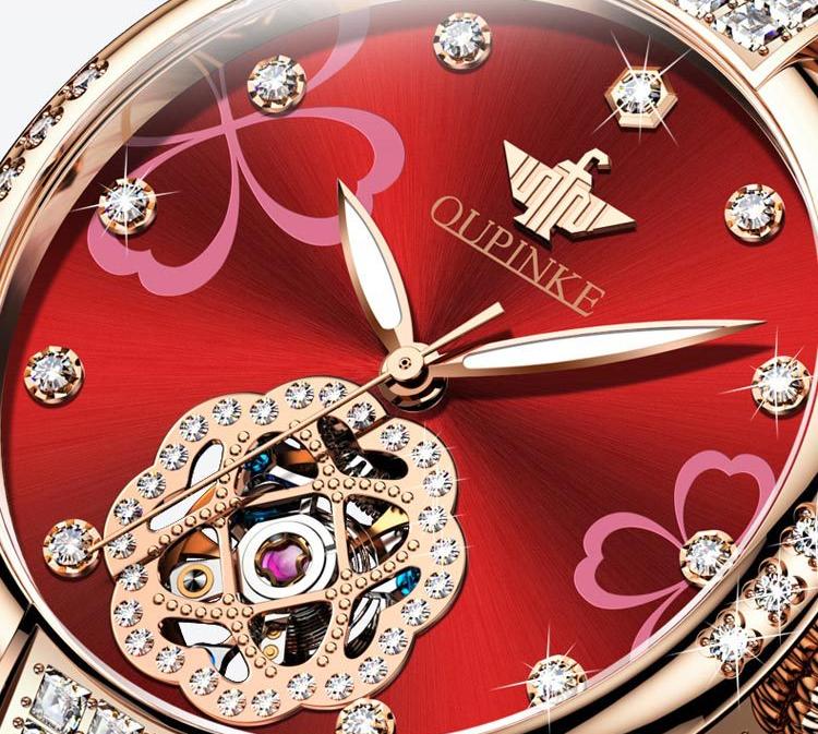 - Skeleton Tourbillon Movement: A meticulously crafted tourbillon mechanism within a skeleton design, showcased in an elegant four-leaf clover motif for both charm and precision.