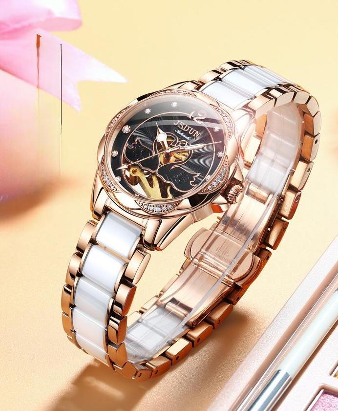 - Heart-Shaped Skeleton Dial: A beautifully intricate heart-shaped cutout that reveals the intricate mechanics within, creating a stunning visual effect.