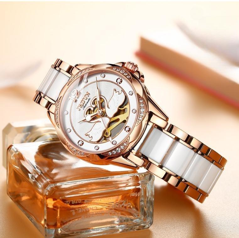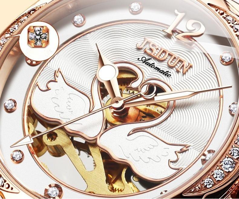 Unveil the allure of the Enchanted Swan Heart Moissanite Automatic, a high-end timepiece that merges artful design with exquisite craftsmanship. This luxurious automatic watch features: