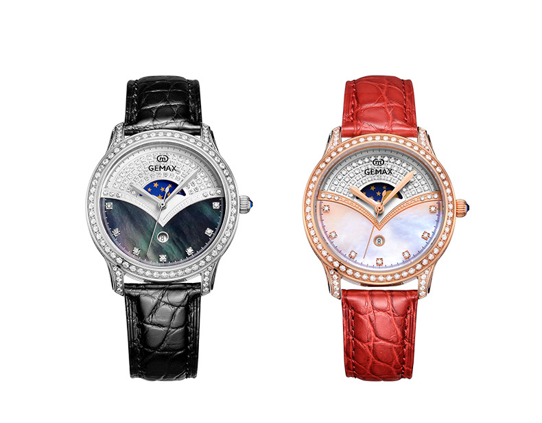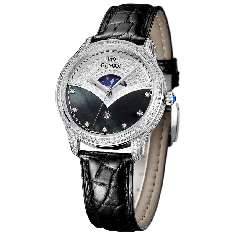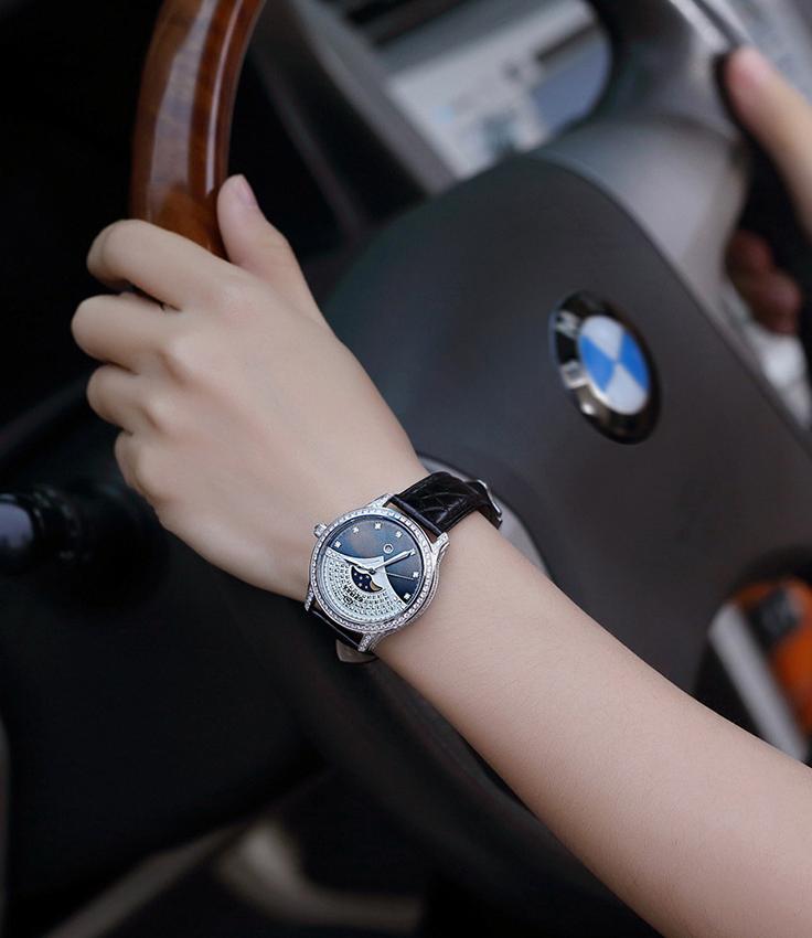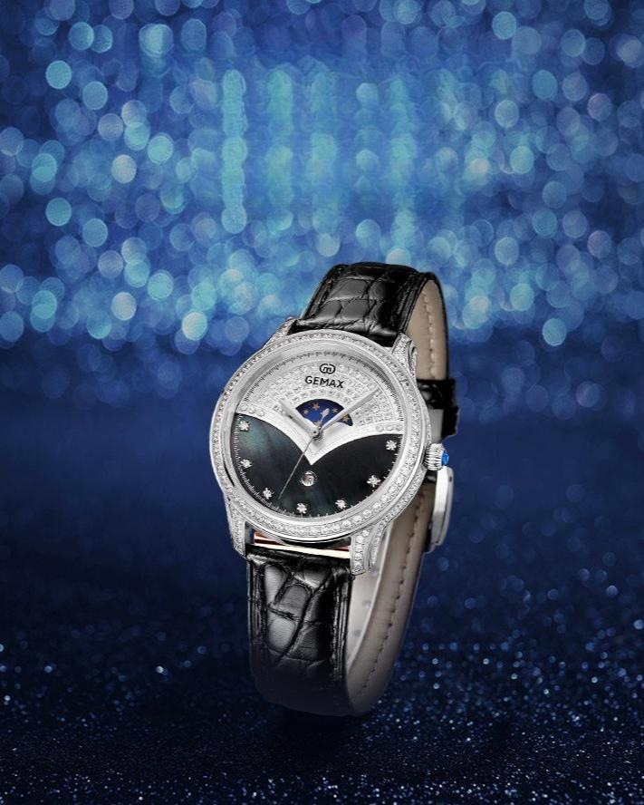 The MX2051 luxury women’s mechanical watch is a perfect blend of sophistication and premium materials, designed for women who appreciate both style and function. The watch features a 36mm 18K gold-plated case, adorned with high-quality moissanite diamonds that shine brilliantly, offering a harmonious balance of luxury and subtlety. Its dial is crafted from exquisite mother-of-pearl, providing a natural luster that enhances the elegance of the timepiece.