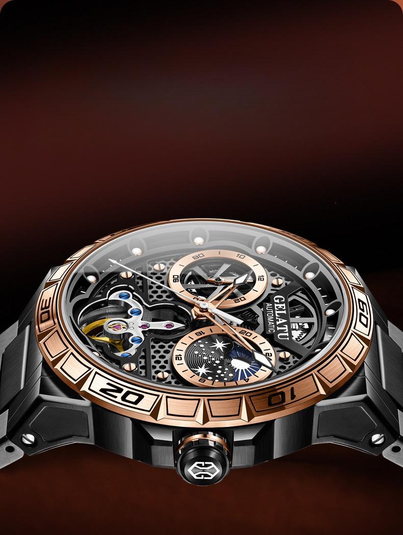 This high-end automatic mechanical watch is designed for men who value both quality and style. Featuring a fully skeletonized dial, it showcases the intricate mechanical structure, exuding sophistication and individuality. Equipped with an original automatic movement, it ensures accurate and stable timekeeping, delivering top-tier performance.