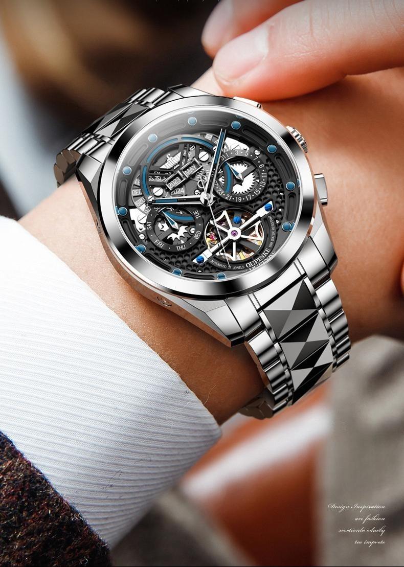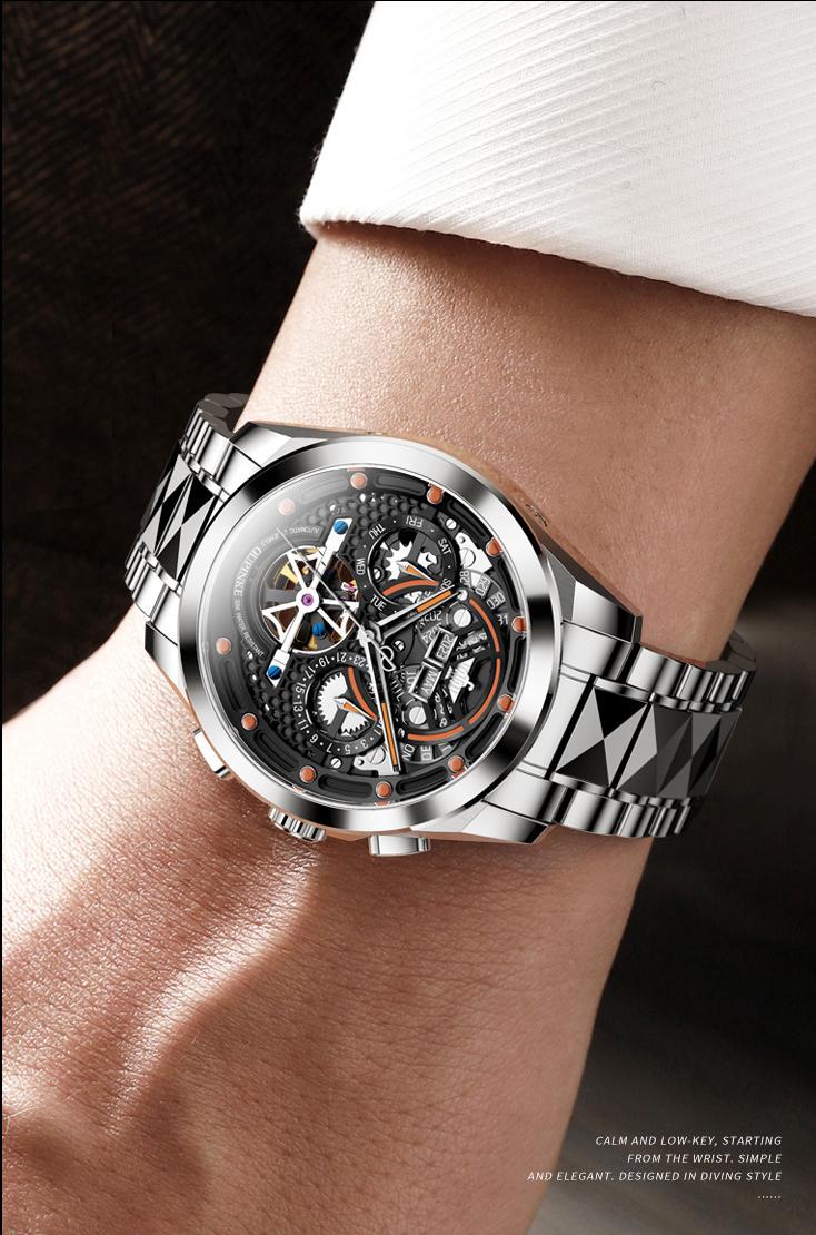 This luxury automatic skeleton men's watch combines fashionable design with functional features, making it an excellent choice for men who value both style and substance in their everyday life.